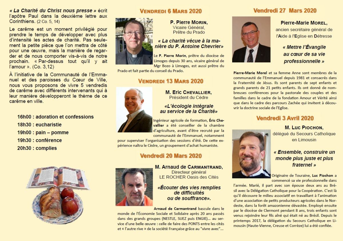 CONFERENCES DE CARÊME 2020 : LA CHARITE DU CHRIST NOUS PRESSE